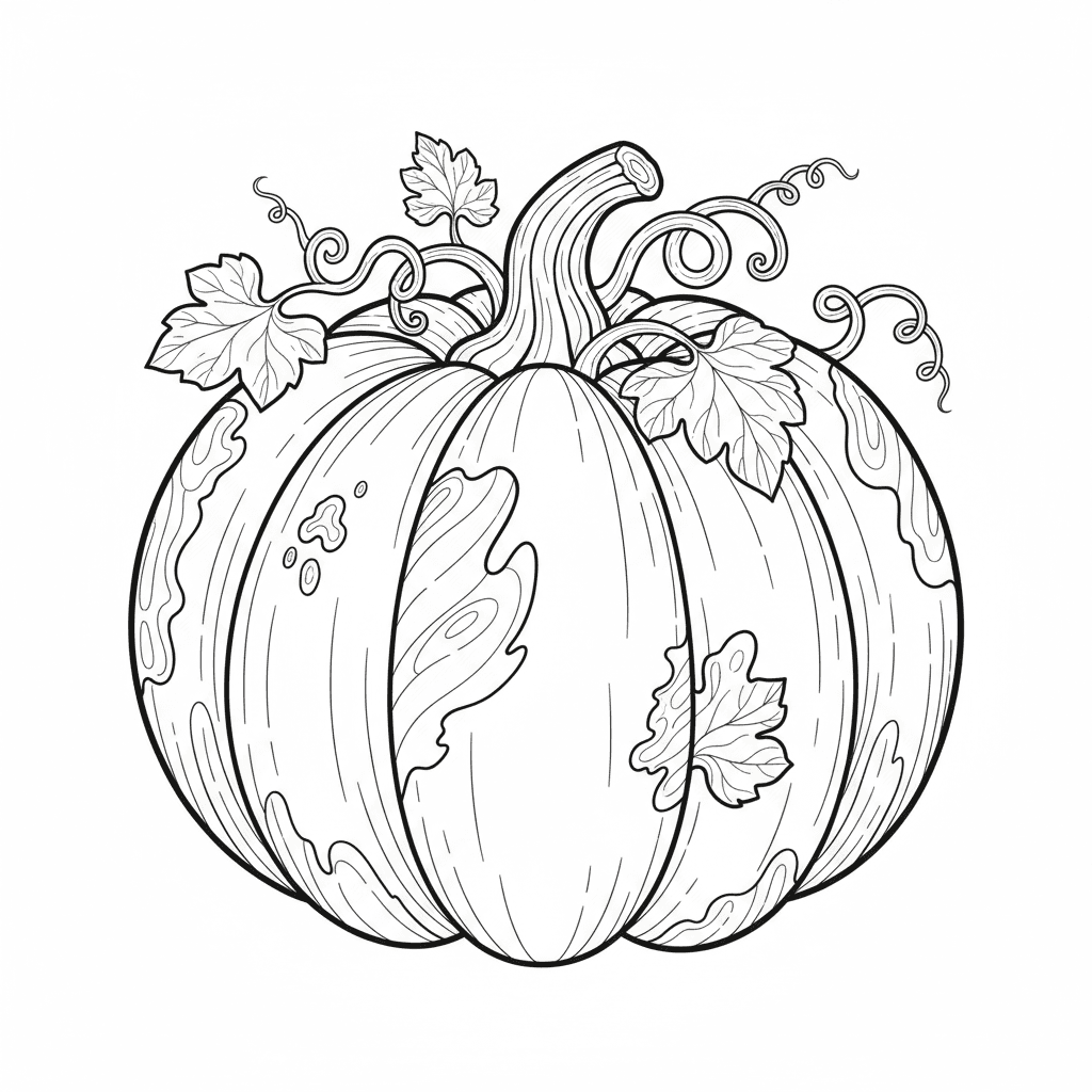 Beautiful single large pumpkin detailed coloring page for kids and adults. Free to download and print.