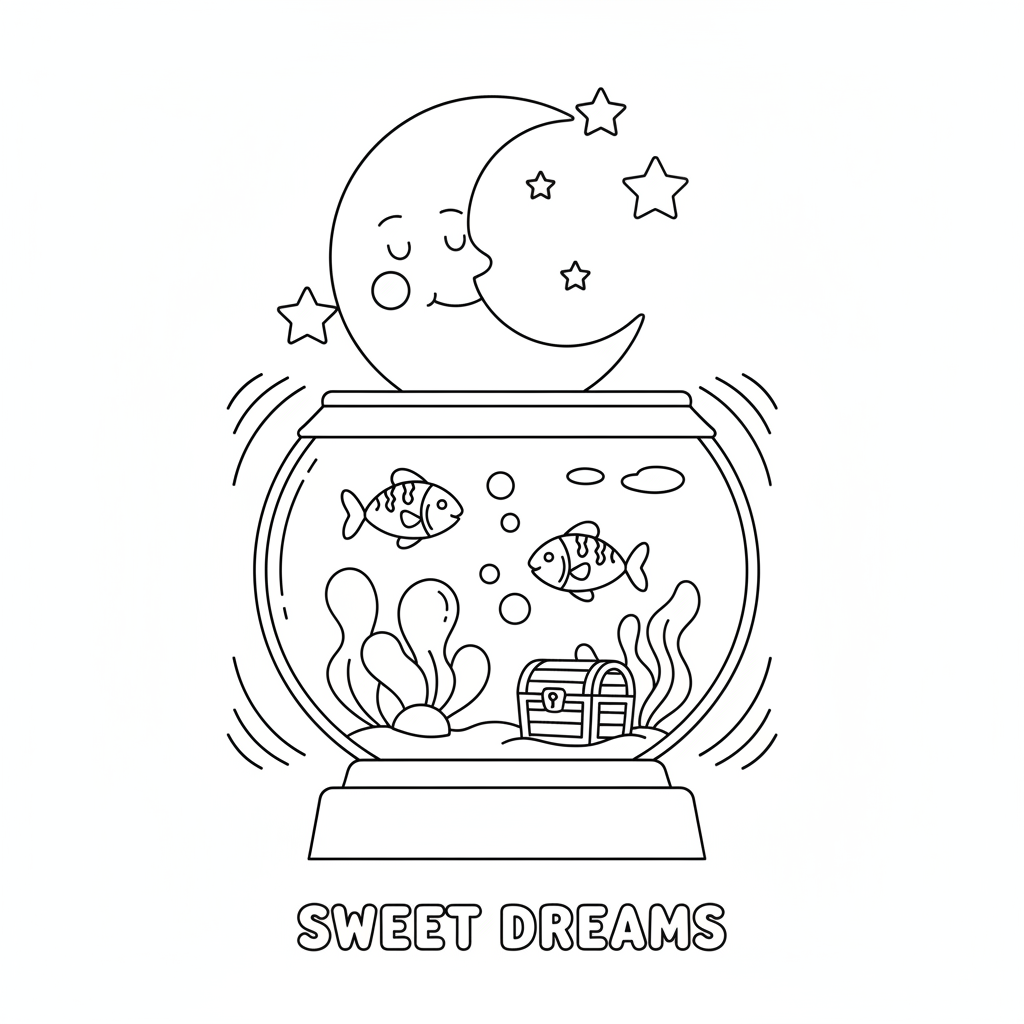 A delightful fish coloring page featuring fish aquarium night light glowing peaceful. Perfect for kids and adults who love coloring!