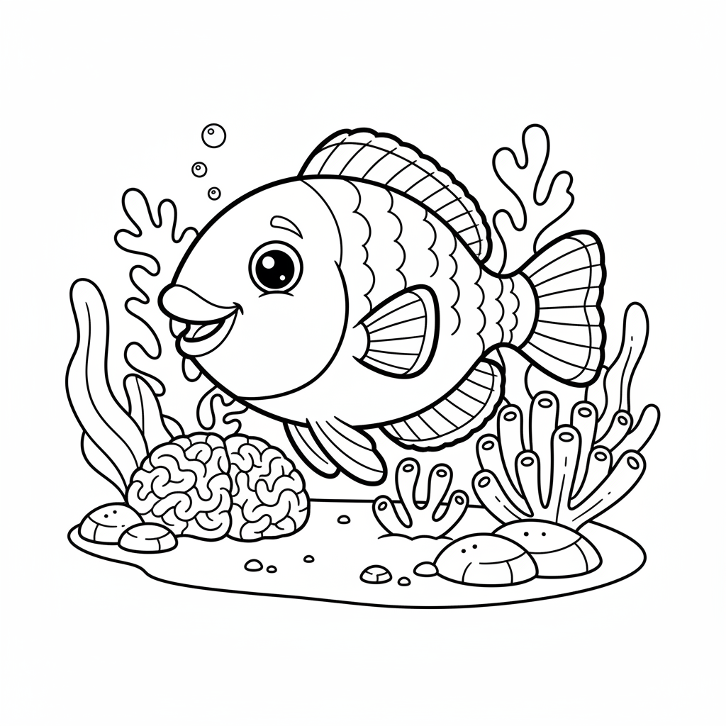 A delightful fish coloring page featuring parrotfish colorful coral reef grazer. Perfect for kids and adults who love coloring!