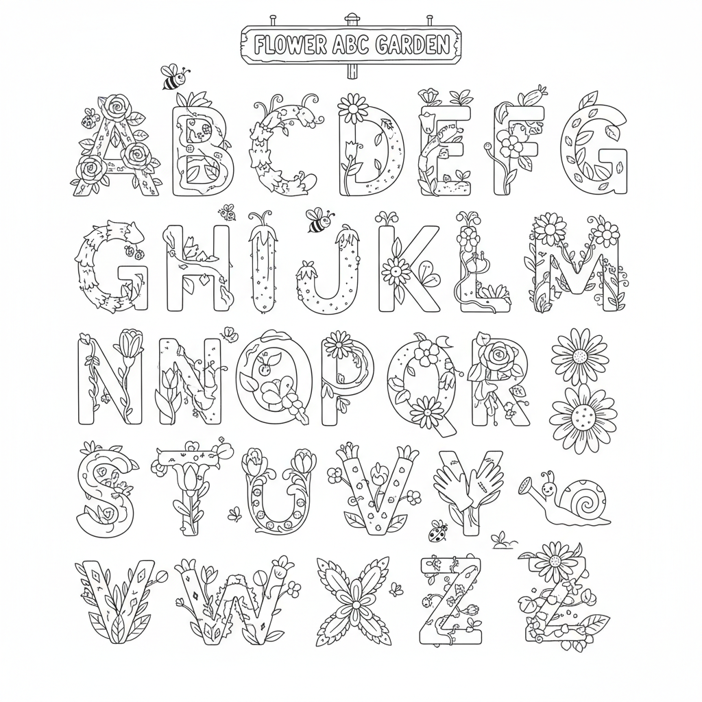 A delightful flower coloring page featuring flower alphabet letter garden creative. Perfect for kids and adults who love coloring!