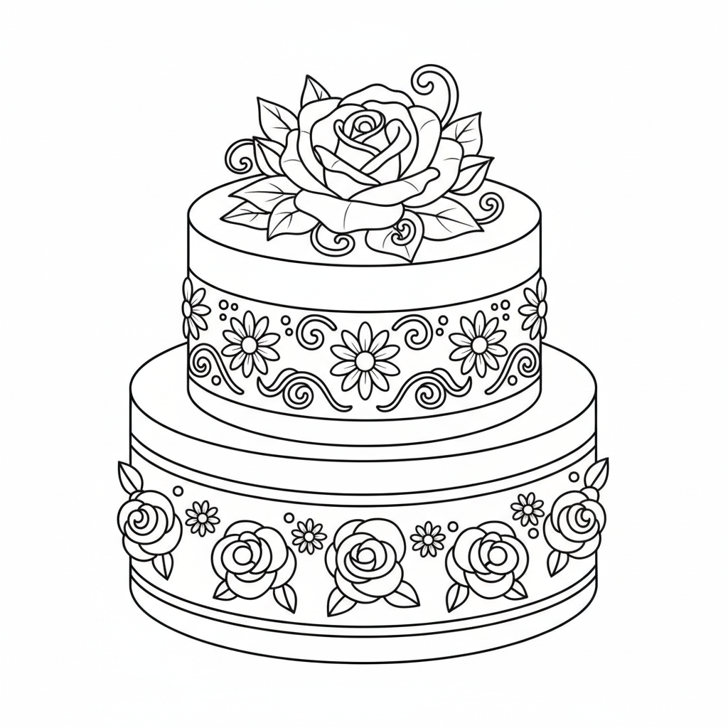 A delightful flower coloring page featuring flower cake decoration fondant piping. Perfect for kids and adults who love coloring!