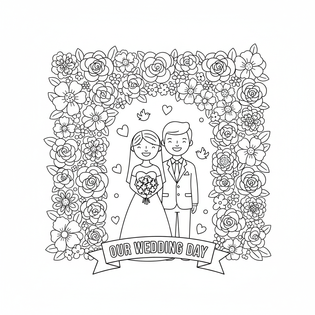 A delightful flower coloring page featuring flower wall backdrop wedding photography. Perfect for kids and adults who love coloring!