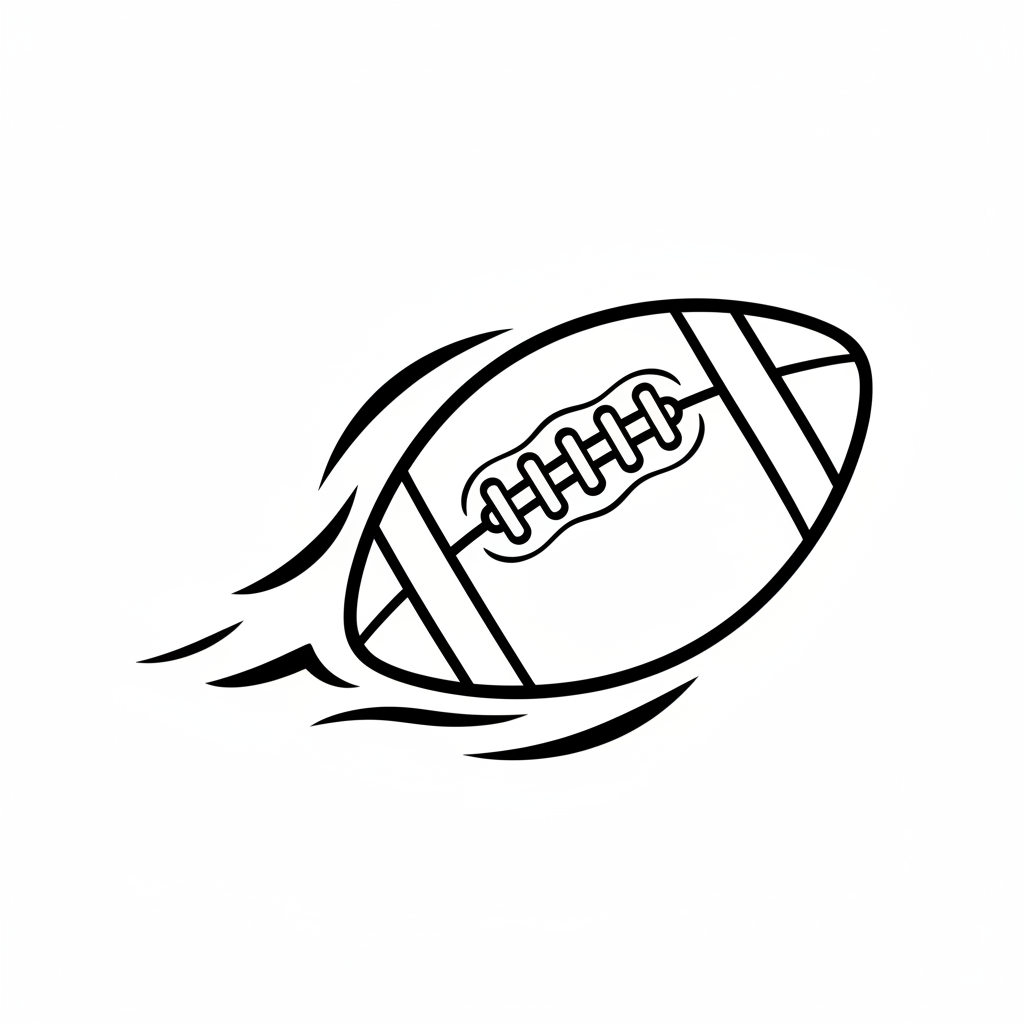 A delightful football coloring page featuring football spiral in mid-air with motion lines flying. Perfect for kids and adults who love coloring!