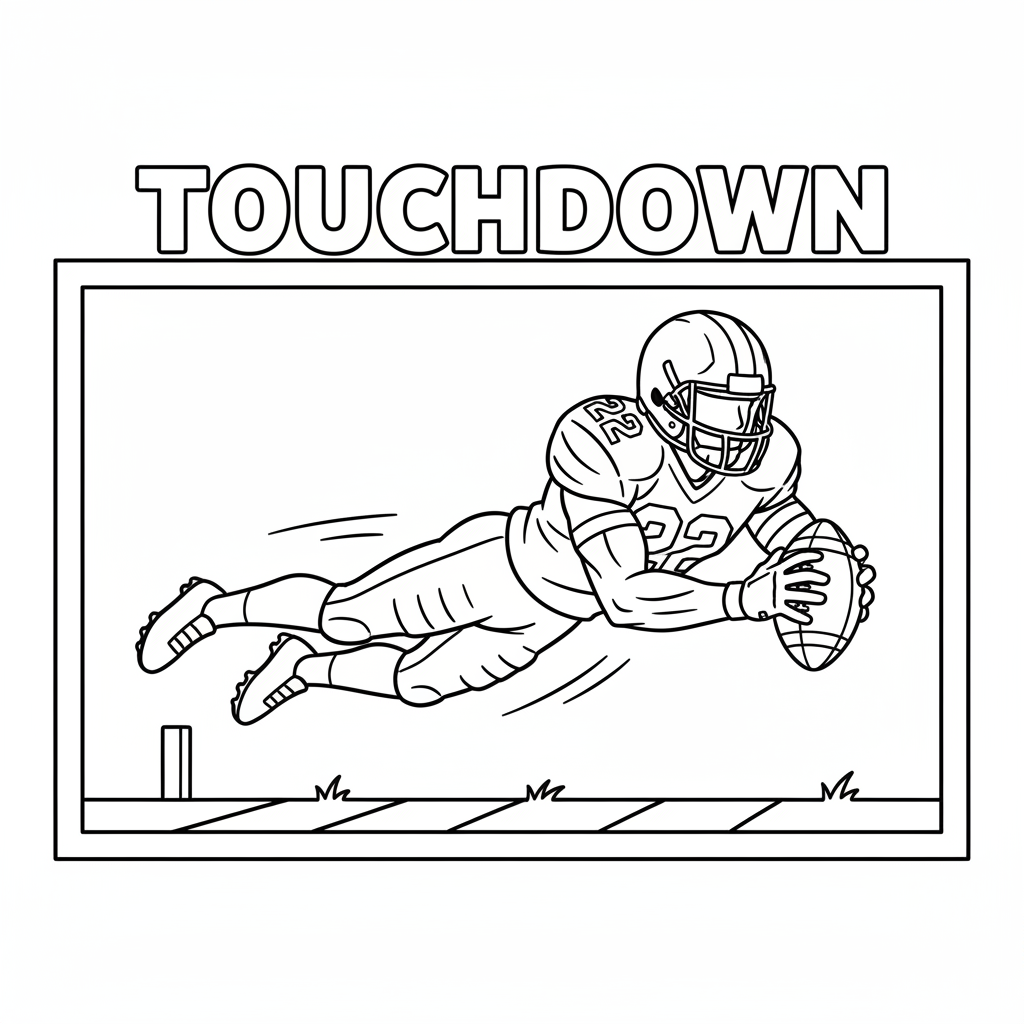 A delightful football coloring page featuring safety making diving interception catch in end zone. Perfect for kids and adults who love coloring!