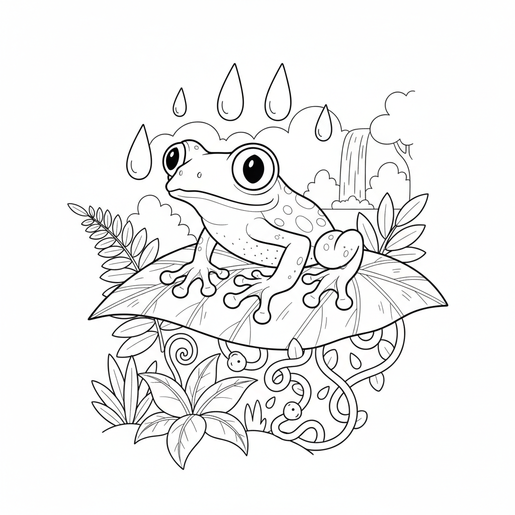 A delightful frog coloring page featuring red-eyed tree frog iconic rainforest. Perfect for kids and adults who love coloring!