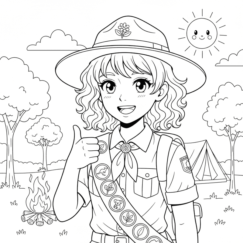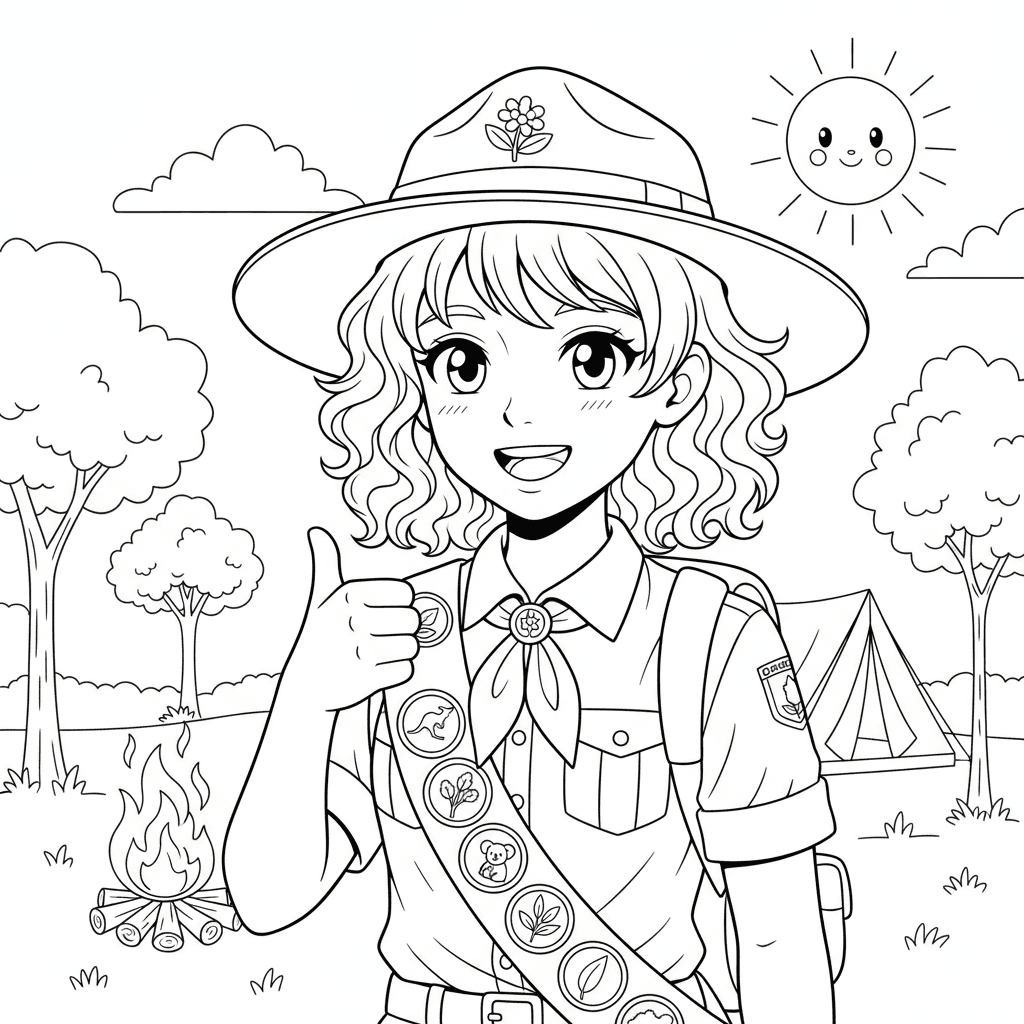 cute anime curly hair australian girl guide smiling and giving thumbs up
