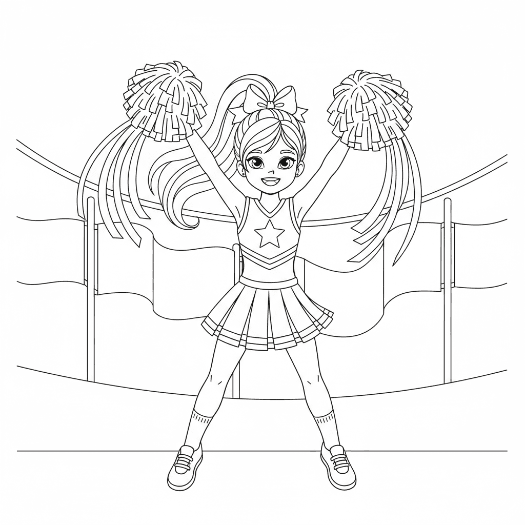 Girl with long hair cheerleader with high ponytail and bow