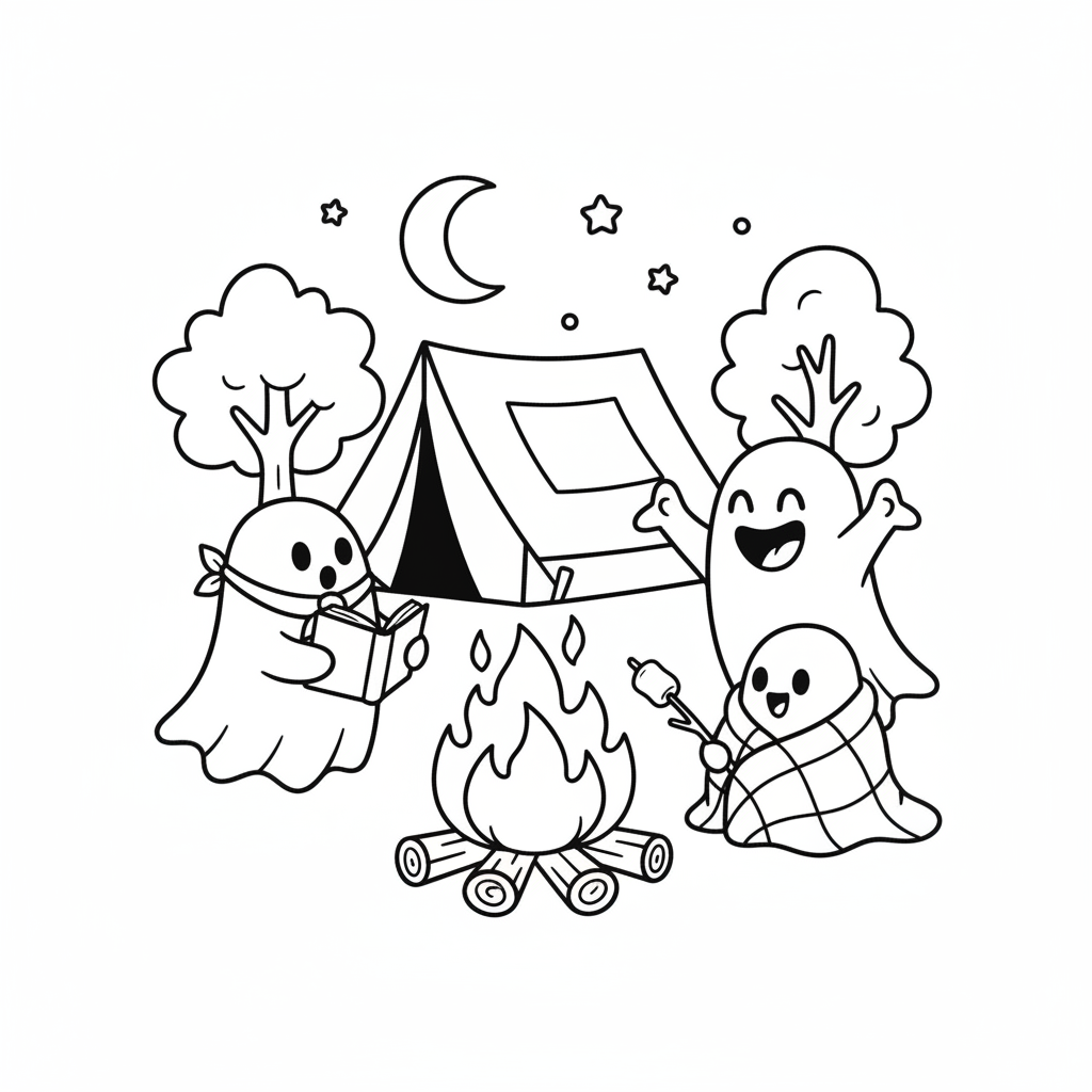 A delightful ghost coloring page featuring ghost camping telling stories campfire. Perfect for kids and adults who love coloring!