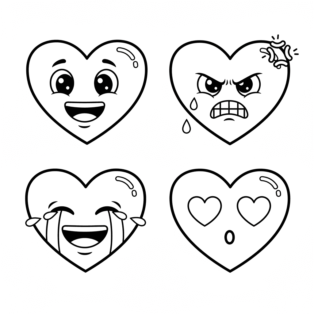 A delightful heart coloring page featuring heart emoji expressions feelings variety. Perfect for kids and adults who love coloring!