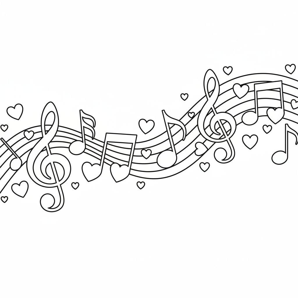 A delightful heart coloring page featuring heart music notes pattern melodic love. Perfect for kids and adults who love coloring!