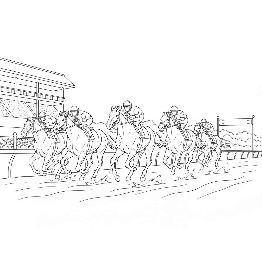 Beautiful racing horses at derby coloring page for kids and adults. Free to download and print.