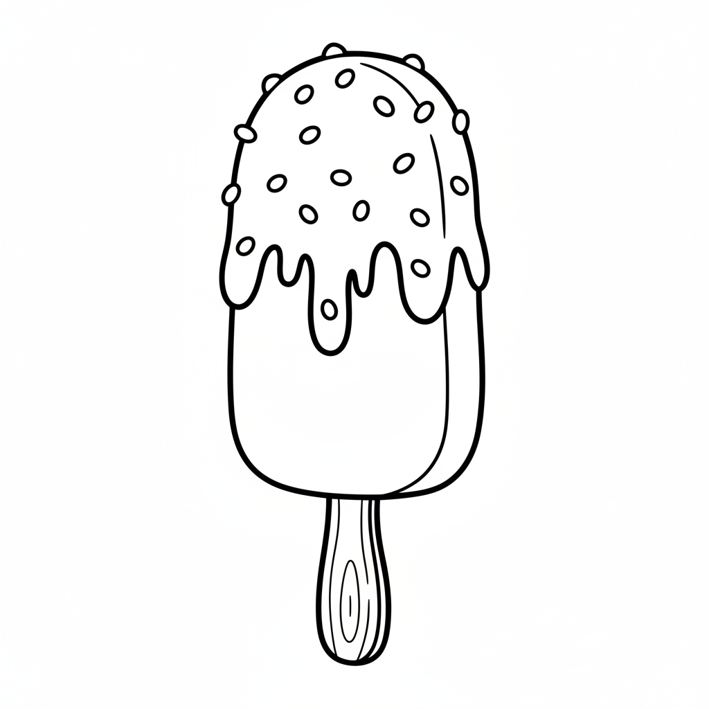 A delightful ice cream coloring page featuring ice cream bar chocolate coated dipped treat. Perfect for kids and adults who love coloring!