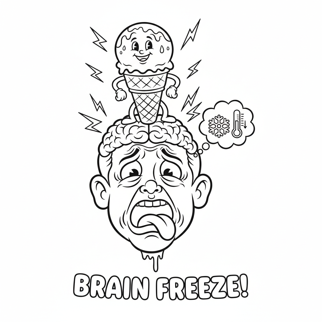 A delightful ice cream coloring page featuring ice cream headache brain freeze funny face. Perfect for kids and adults who love coloring!