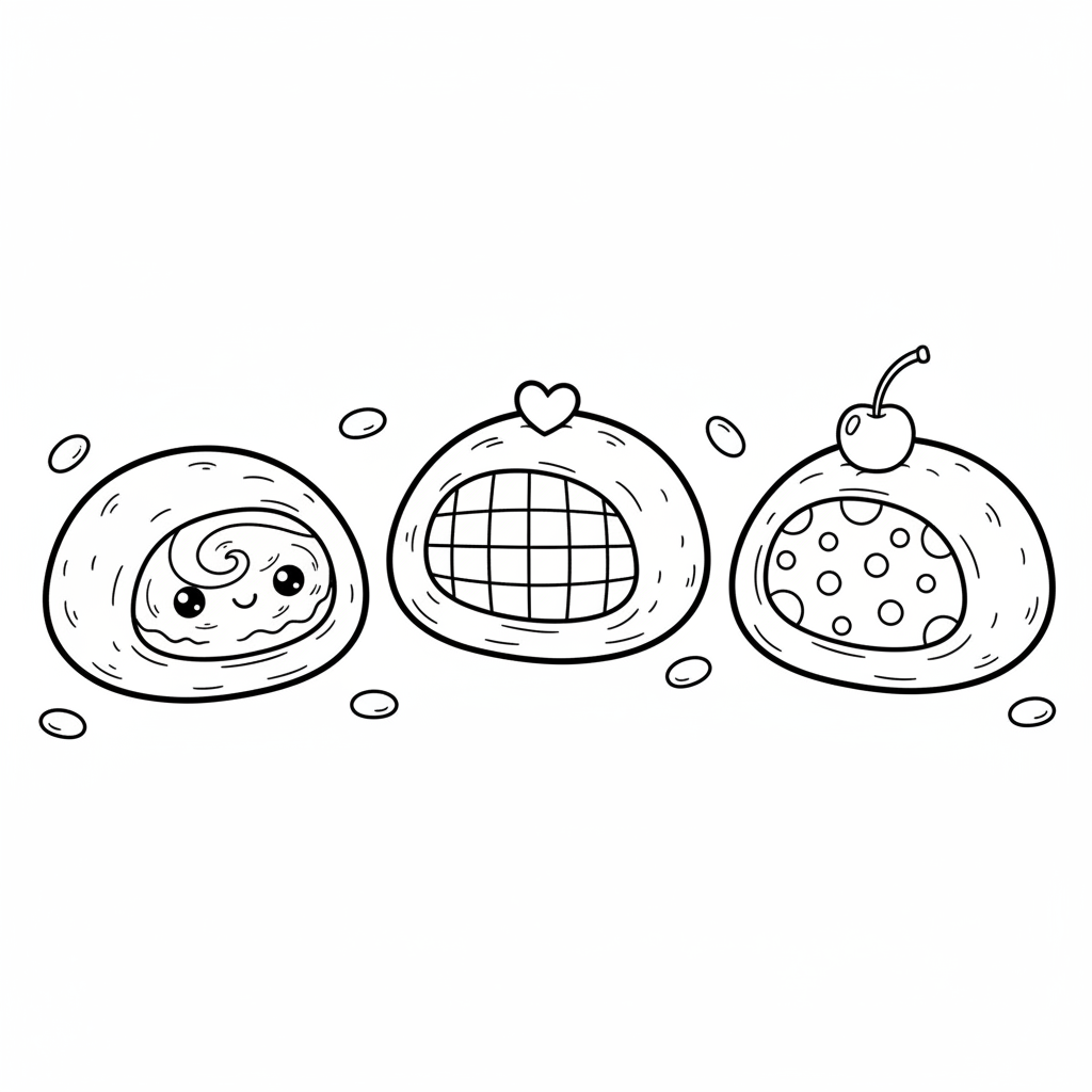 A delightful ice cream coloring page featuring ice cream mochi japanese treat wrapped rice. Perfect for kids and adults who love coloring!
