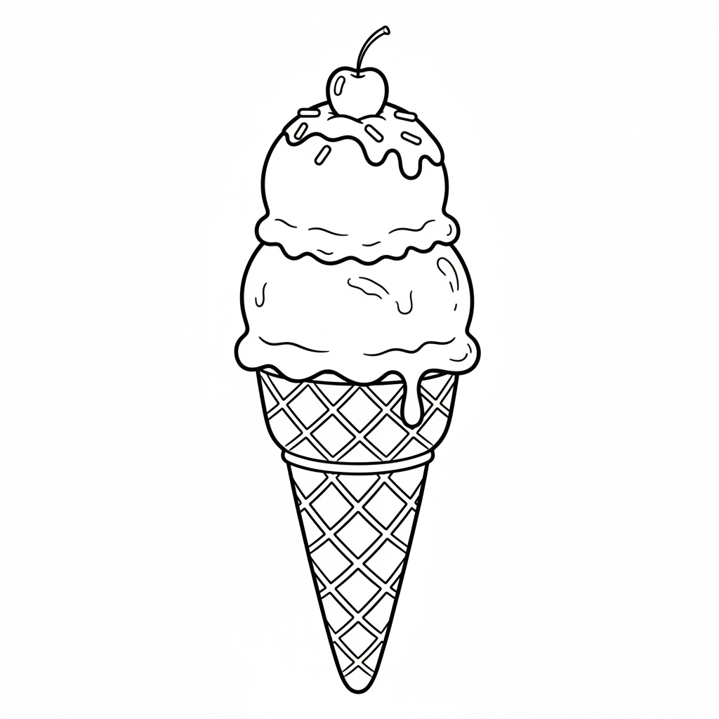 A delightful ice cream coloring page featuring ice cream waffle cone fresh baked crispy. Perfect for kids and adults who love coloring!
