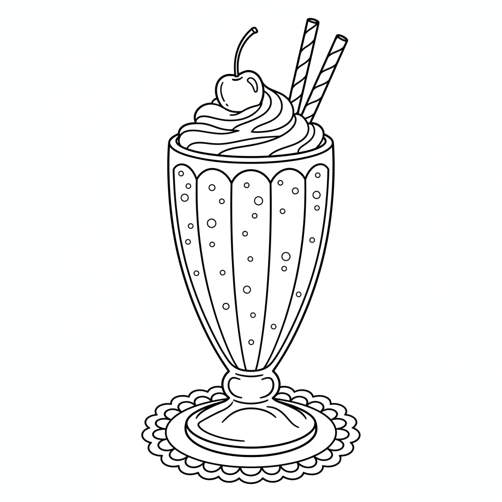 Beautiful milkshake with cherry on top coloring page for kids and adults. Free to download and print.
