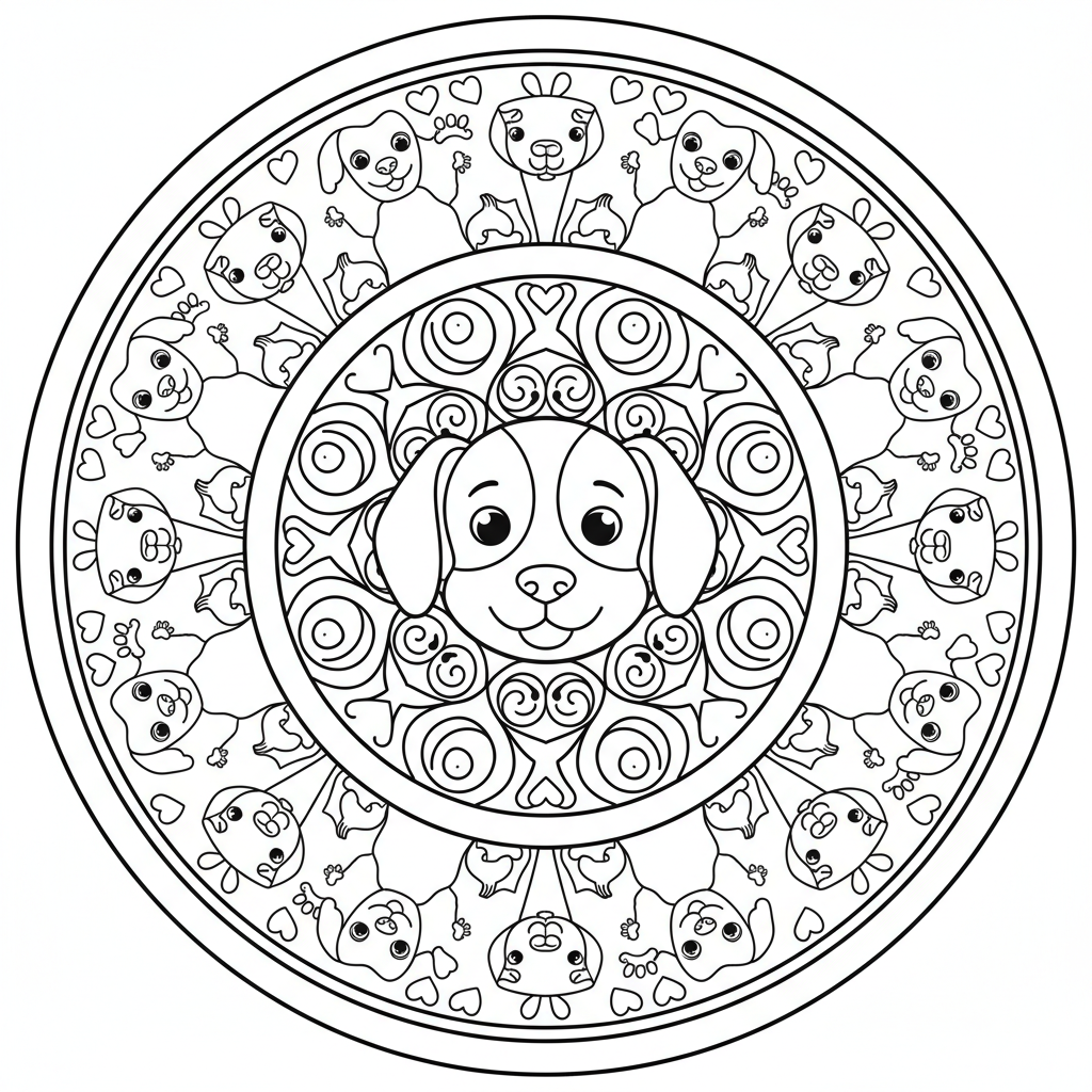 A delightful mandala coloring page featuring dog mandala canine themed pattern design. Perfect for kids and adults who love coloring!