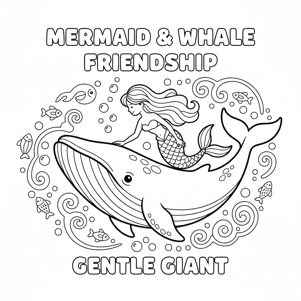 A delightful mermaid coloring page featuring mermaid and whale friendship gentle giant. Perfect for kids and adults who love coloring!