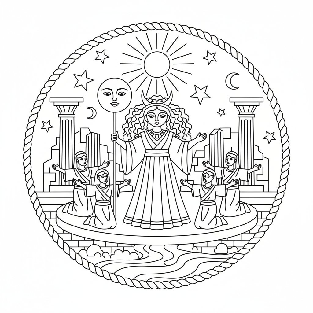 A delightful moon coloring page featuring moon deity mythology ancient worship lunar. Perfect for kids and adults who love coloring!
