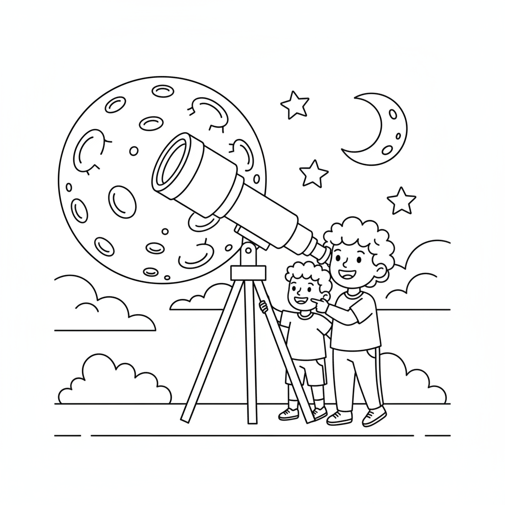 A delightful moon coloring page featuring moon viewed through telescope astronomy observation. Perfect for kids and adults who love coloring!