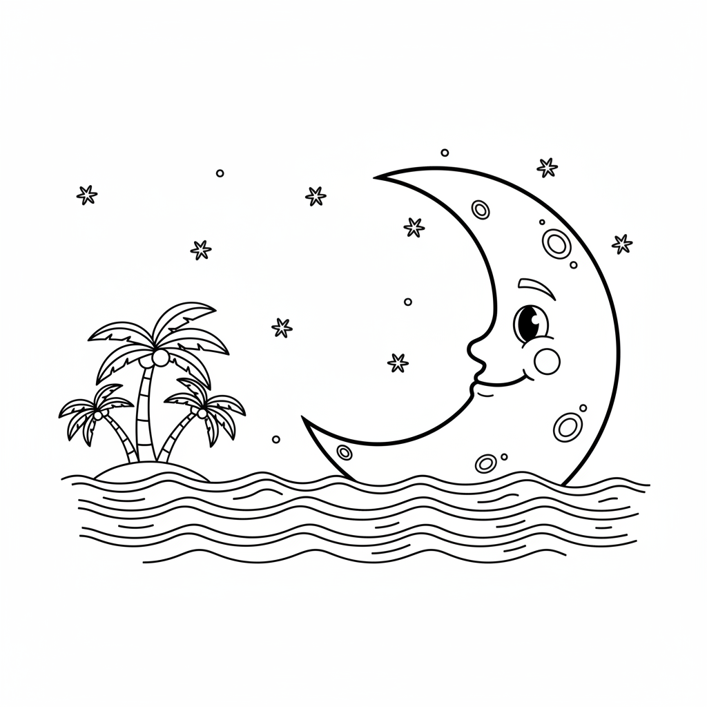 A delightful moon coloring page featuring moonrise over ocean horizon night sea. Perfect for kids and adults who love coloring!