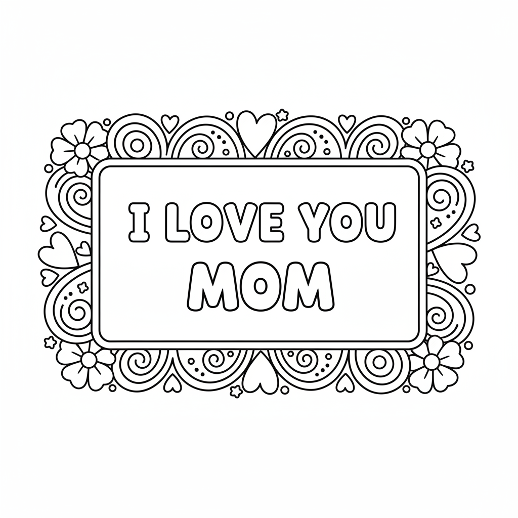 A delightful mother's day coloring page featuring decorative picture frame with I love you mom message. Perfect for kids and adults who love coloring!