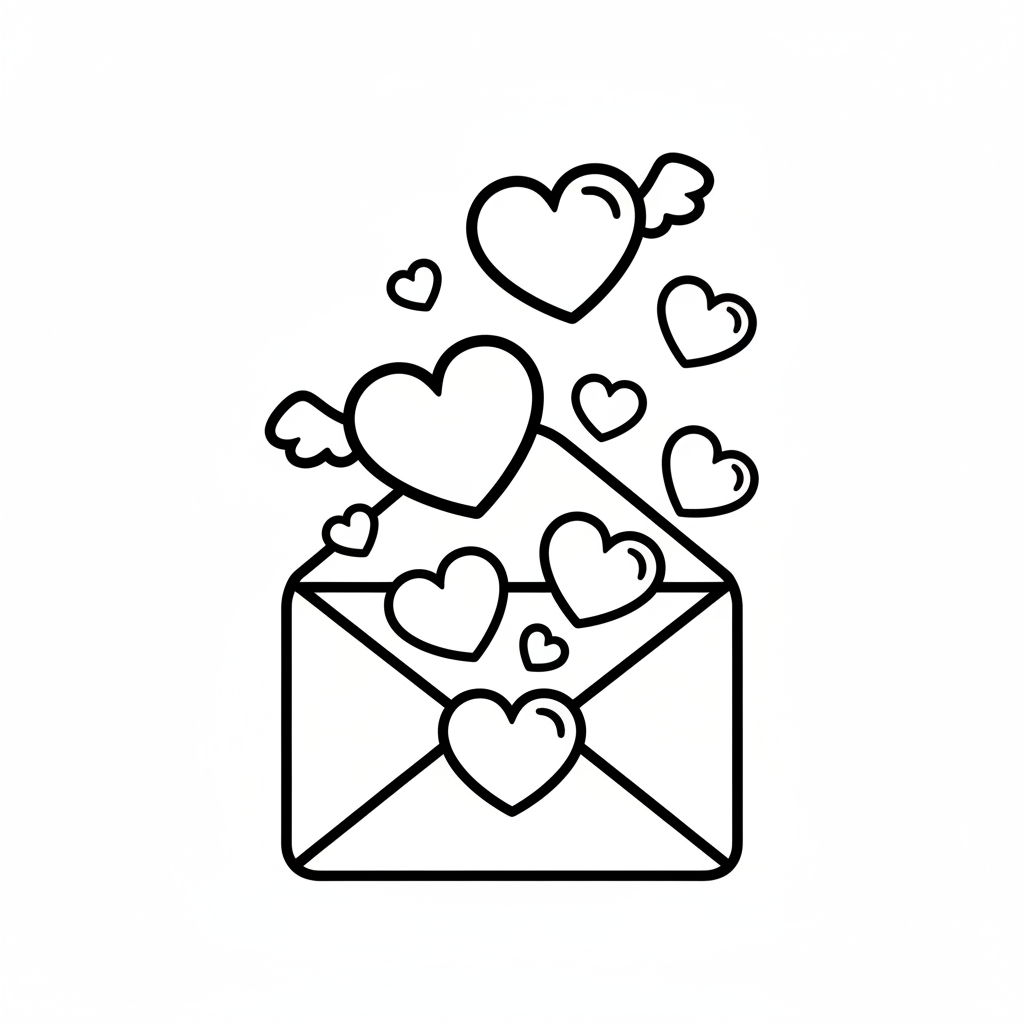 A delightful mother's day coloring page featuring simple love letter envelope with hearts flying out for kids. Perfect for kids and adults who love coloring!
