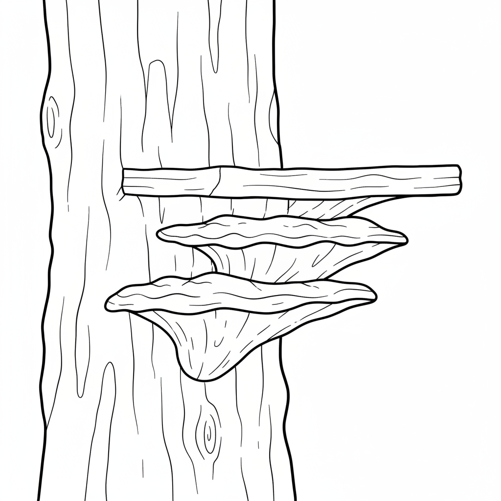 A delightful mushroom coloring page featuring bracket fungus growing tiers tree trunk shelf. Perfect for kids and adults who love coloring!