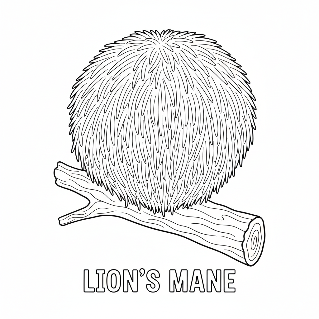 A delightful mushroom coloring page featuring lions mane mushroom fluffy white texture unique. Perfect for kids and adults who love coloring!