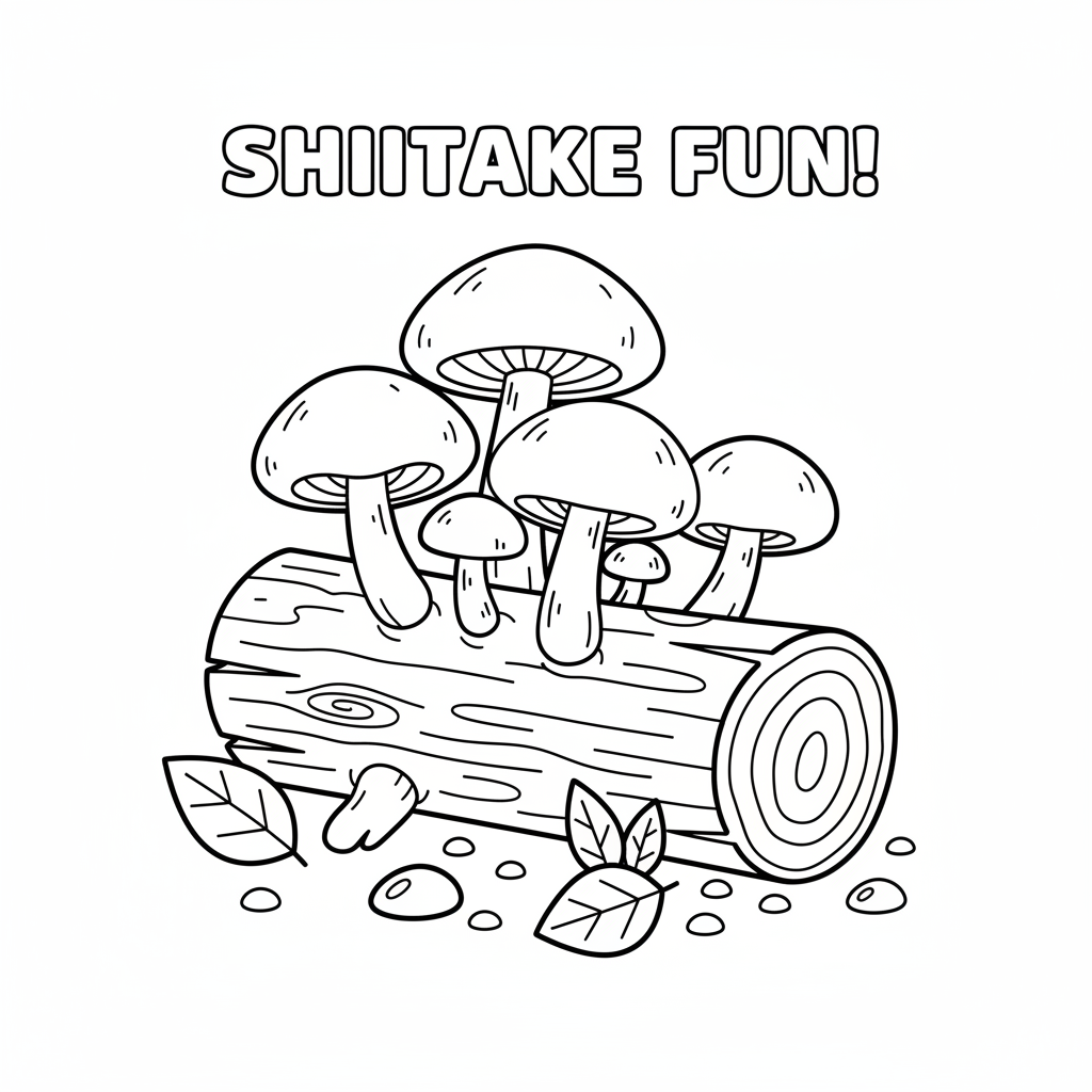 A delightful mushroom coloring page featuring shiitake mushrooms growing wooden log cultivation. Perfect for kids and adults who love coloring!