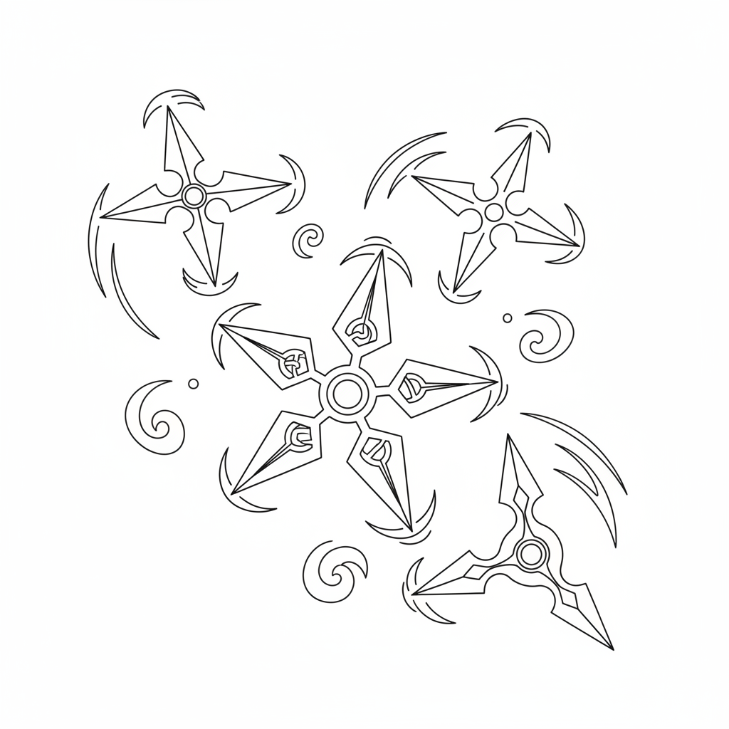 Beautiful ninja throwing stars coloring page for kids and adults. Free to download and print.