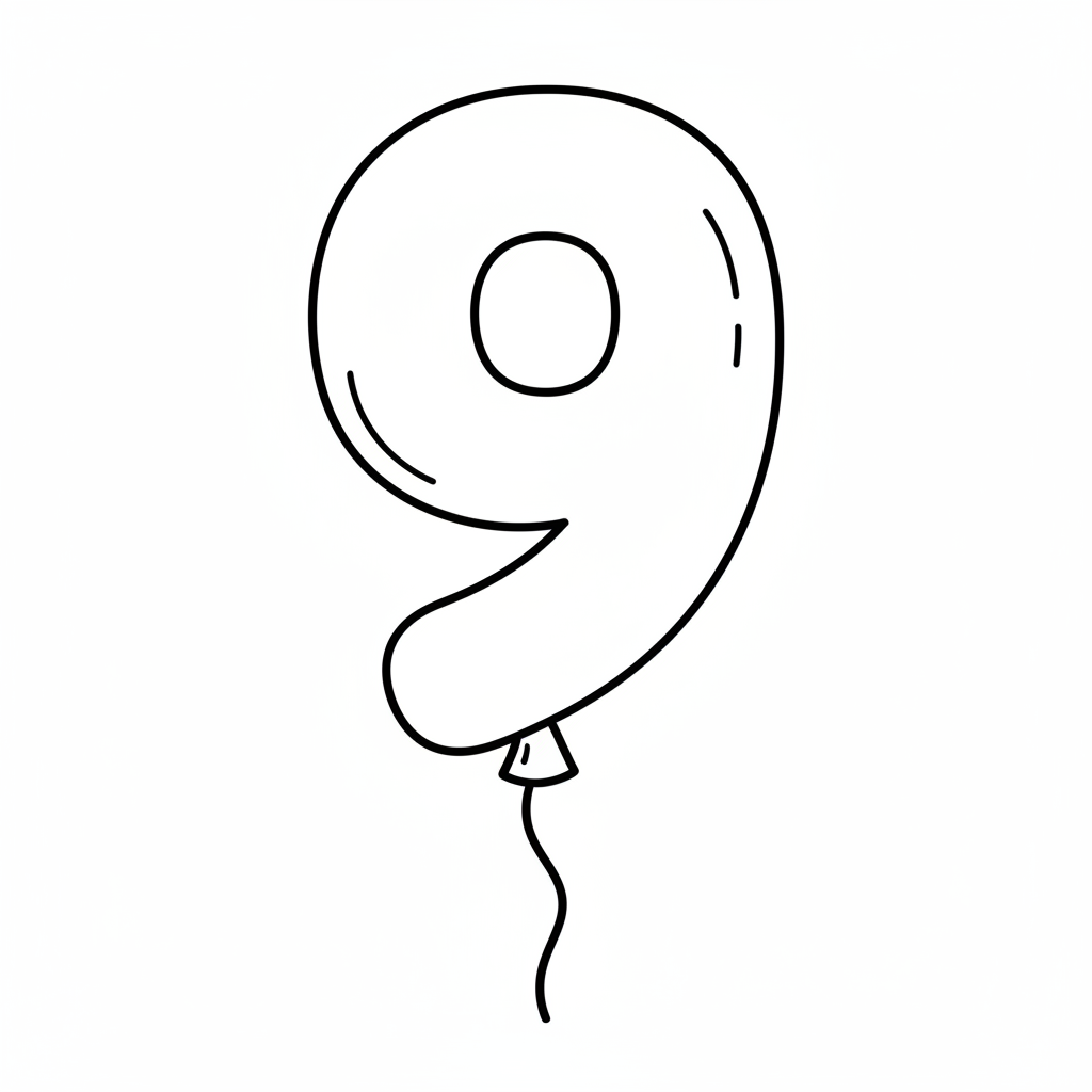 A delightful number coloring page featuring number 9 shaped like a balloon on string floating. Perfect for kids and adults who love coloring!