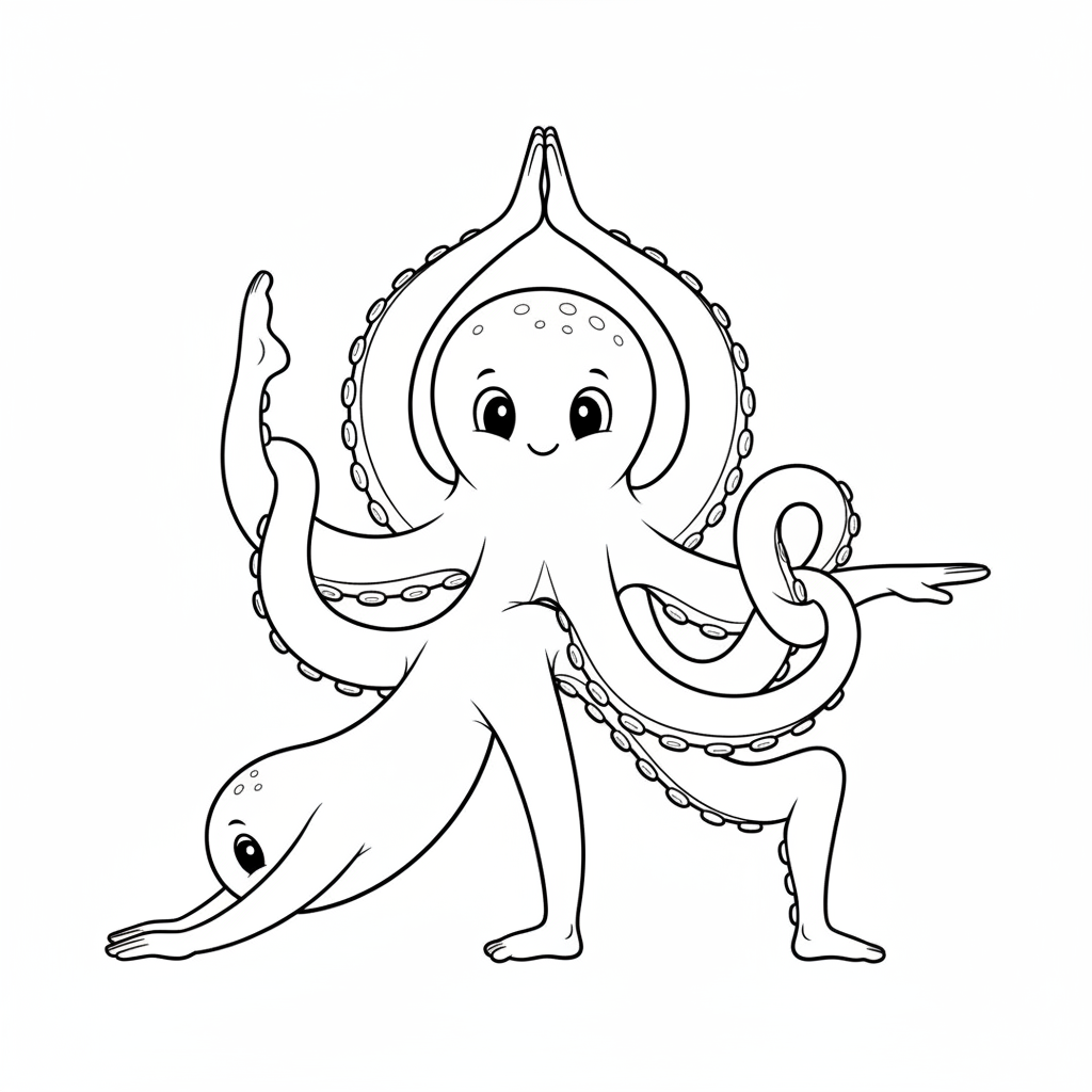 A delightful octopus coloring page featuring octopus yoga multiple poses simultaneously flexible. Perfect for kids and adults who love coloring!