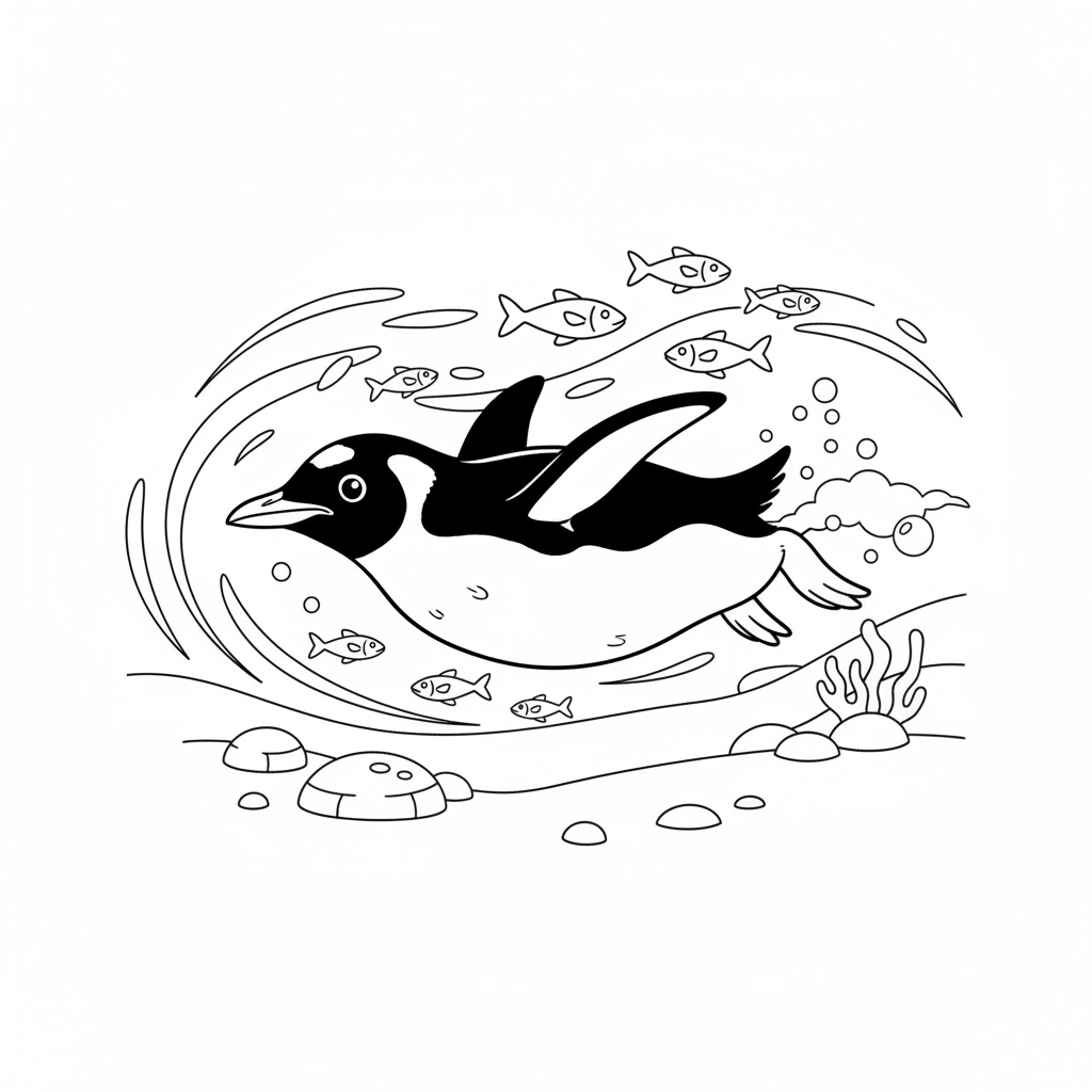 A delightful penguin coloring page featuring gentoo penguin the fastest swimming penguin racing through underwater scene. Perfect for kids and adults who love coloring!