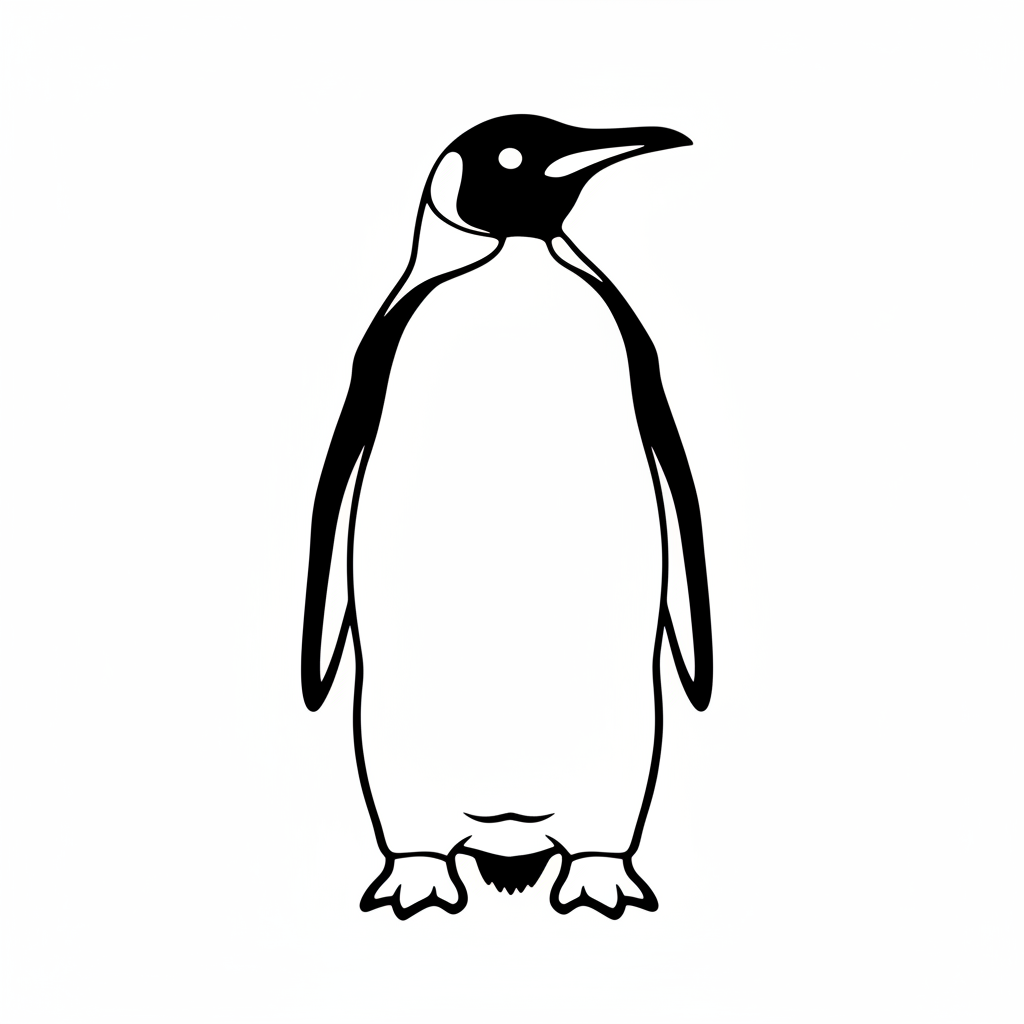 A delightful penguin coloring page featuring king penguin standing regally with bright orange chest markings. Perfect for kids and adults who love coloring!