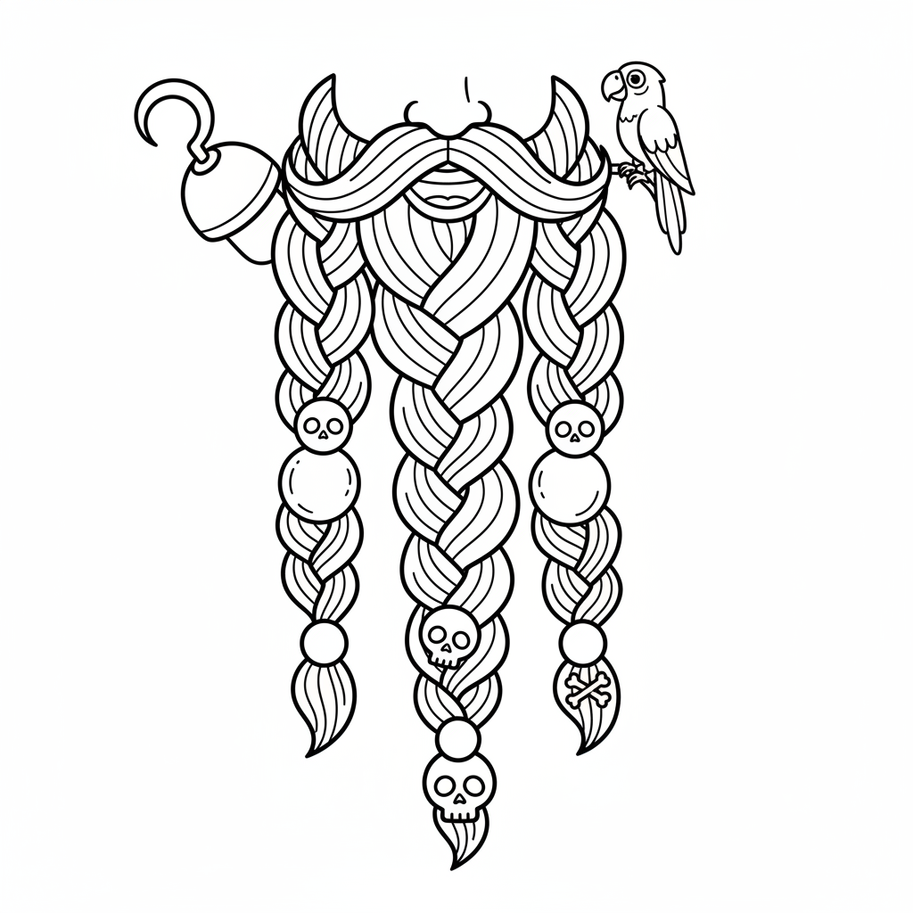 A delightful pirate coloring page featuring pirate beard braided decorated beads long. Perfect for kids and adults who love coloring!
