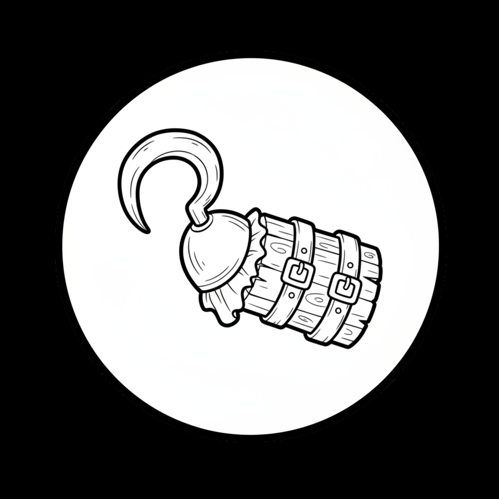 A delightful pirate coloring page featuring pirate hook hand accessory famous injury look. Perfect for kids and adults who love coloring!