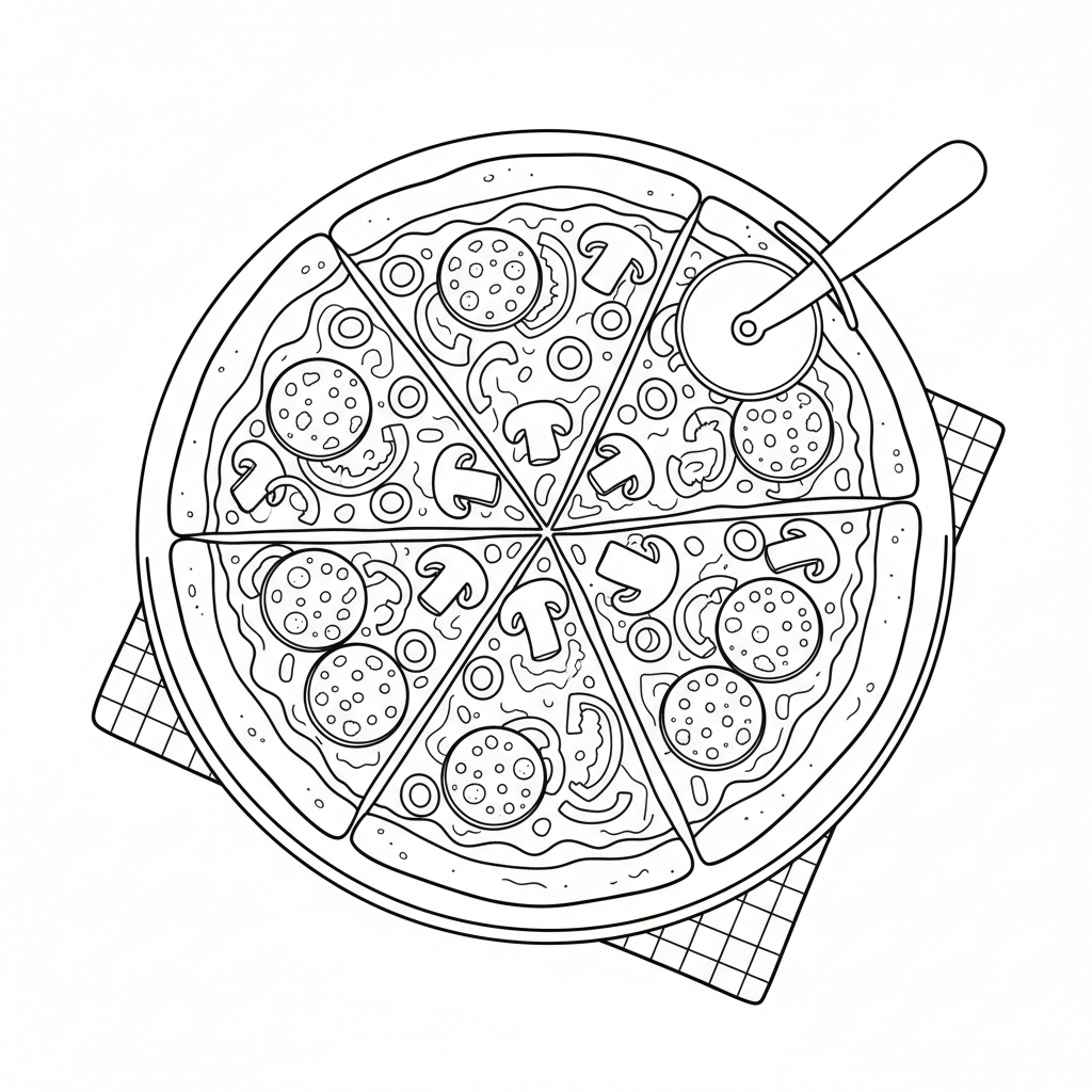 A delightful pizza coloring page featuring thin crust pizza crispy light traditional style. Perfect for kids and adults who love coloring!