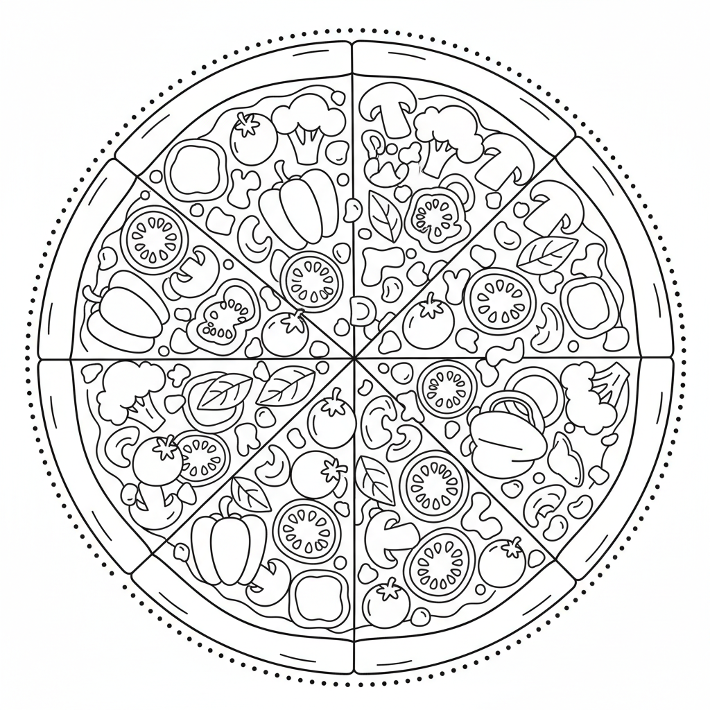 A delightful pizza coloring page featuring vegetarian pizza loaded vegetables healthy colorful. Perfect for kids and adults who love coloring!