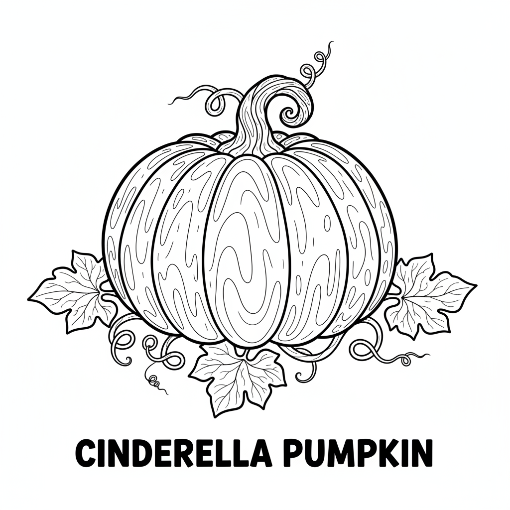 A delightful pumpkin coloring page featuring cinderella pumpkin heirloom variety blue green unique. Perfect for kids and adults who love coloring!