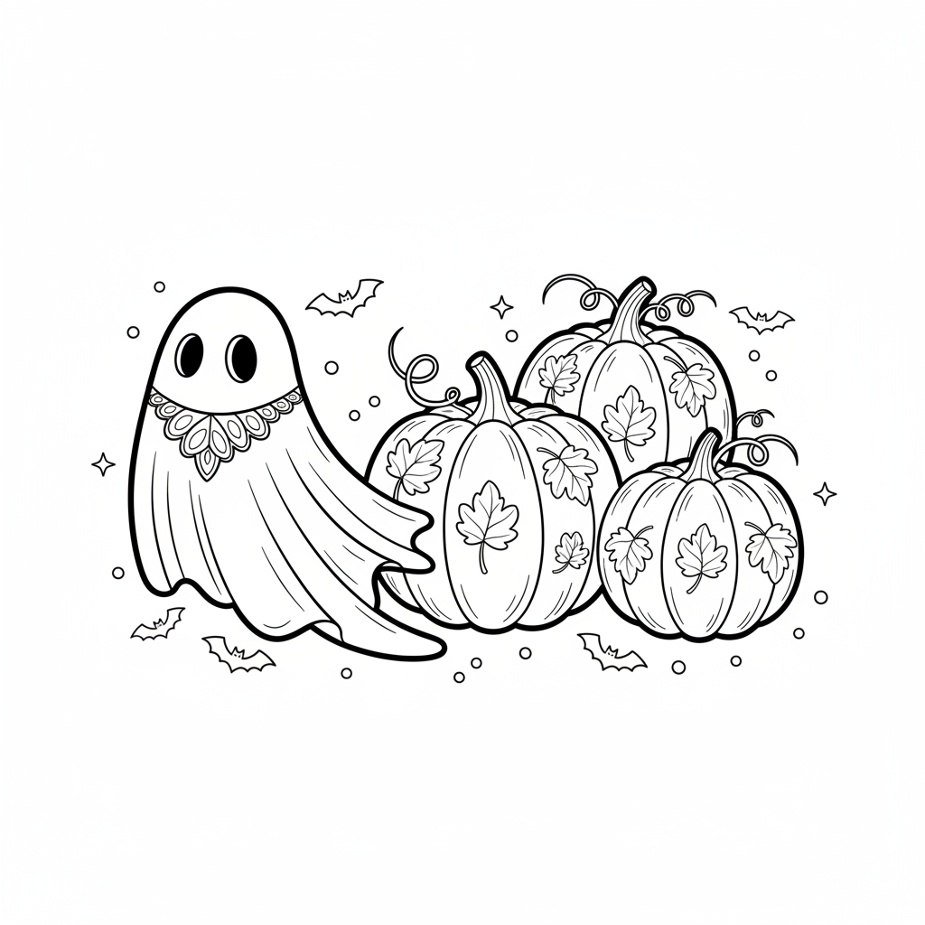 A delightful pumpkin coloring page featuring white pumpkin elegant decoration ghost pale unique. Perfect for kids and adults who love coloring!