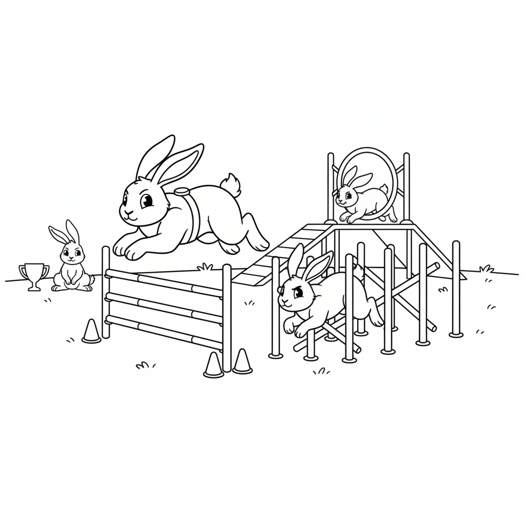 A delightful rabbit coloring page featuring rabbit showjumping agility competition athletic training. Perfect for kids and adults who love coloring!
