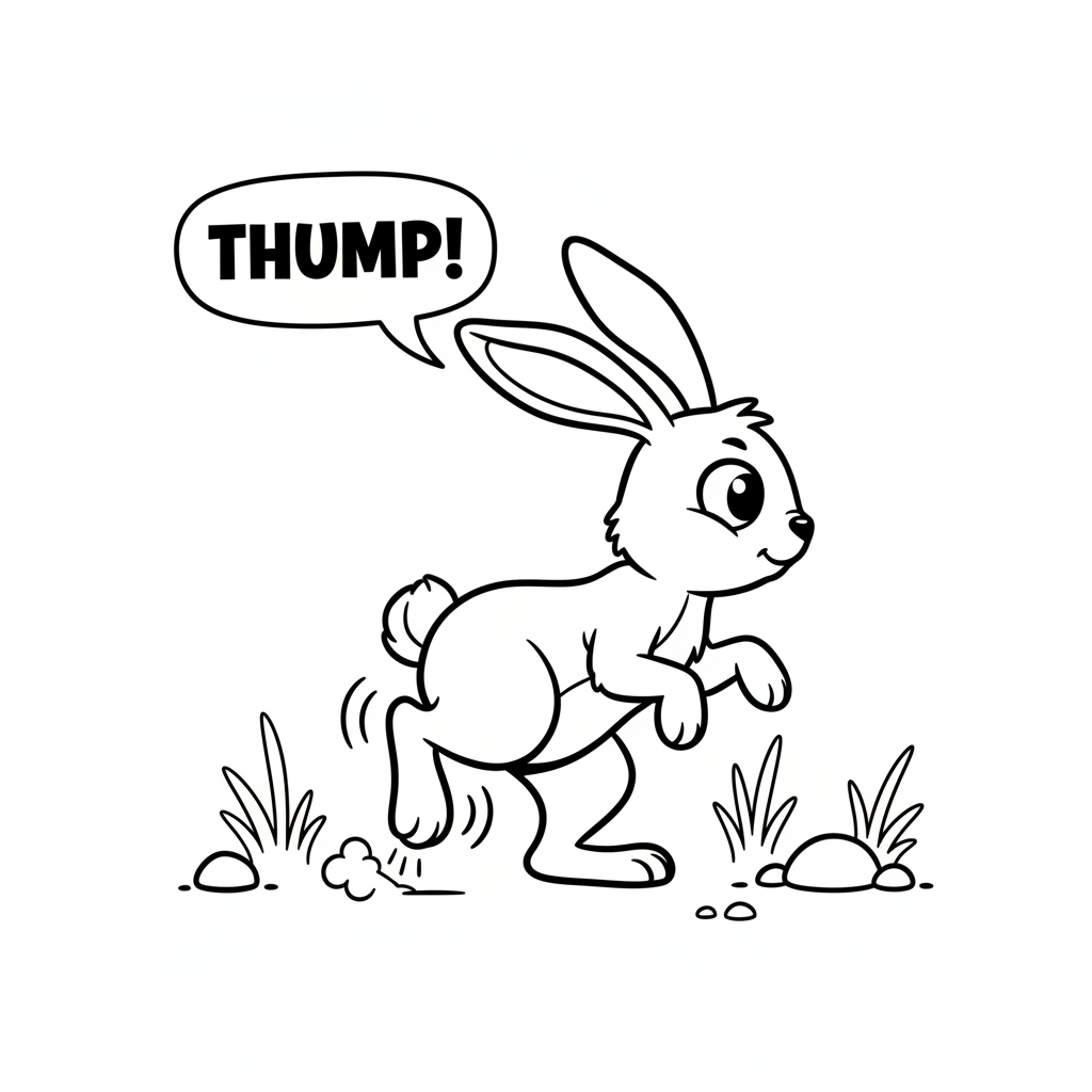 A delightful rabbit coloring page featuring rabbit thumping foot warning alert communication. Perfect for kids and adults who love coloring!