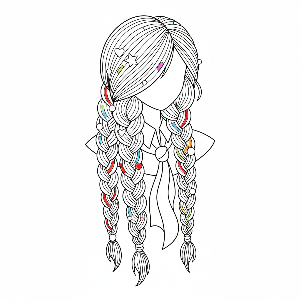 A delightful rainbow coloring page featuring rainbow braided hair colorful styled strands fashion. Perfect for kids and adults who love coloring!