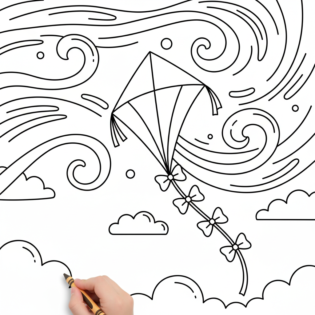 A delightful rainbow coloring page featuring rainbow kite flying colorful wind sky soaring. Perfect for kids and adults who love coloring!