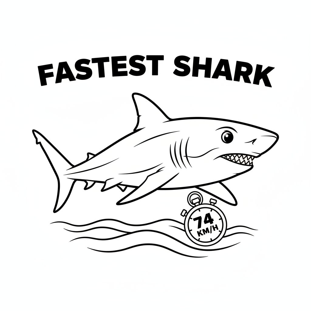 A delightful shark coloring page featuring mako shark fastest swimming speed record holder. Perfect for kids and adults who love coloring!