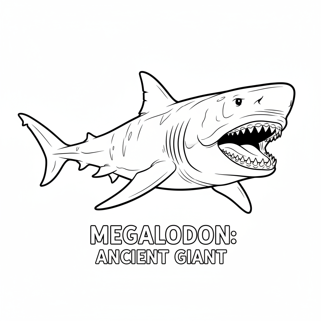 A delightful shark coloring page featuring megalodon ancient giant prehistoric extinct massive. Perfect for kids and adults who love coloring!