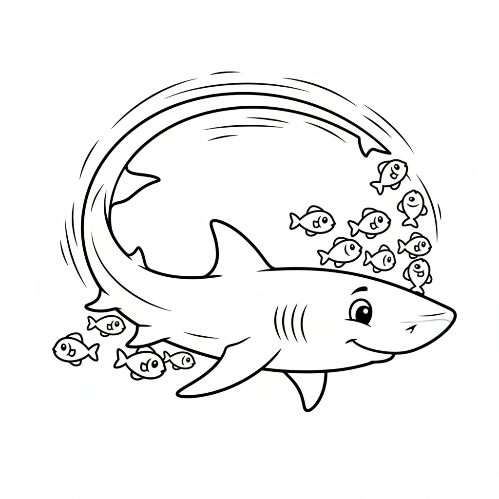 A delightful shark coloring page featuring thresher shark long tail unique hunting technique. Perfect for kids and adults who love coloring!