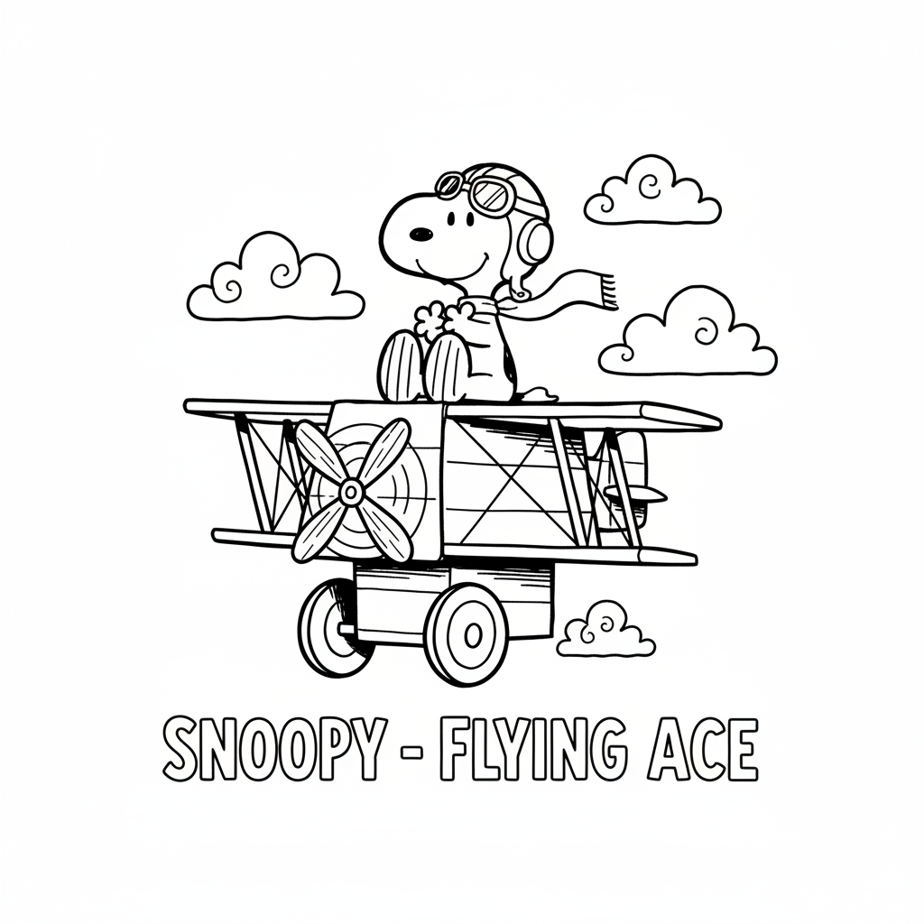 A delightful snoopy coloring page featuring Snoopy as the World War I Flying Ace on his doghouse. Perfect for kids and adults who love coloring!