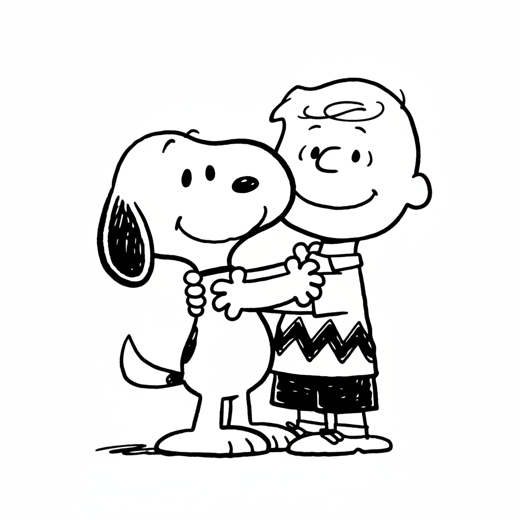 A delightful snoopy coloring page featuring Snoopy hugging Charlie Brown warm friendly embrace. Perfect for kids and adults who love coloring!